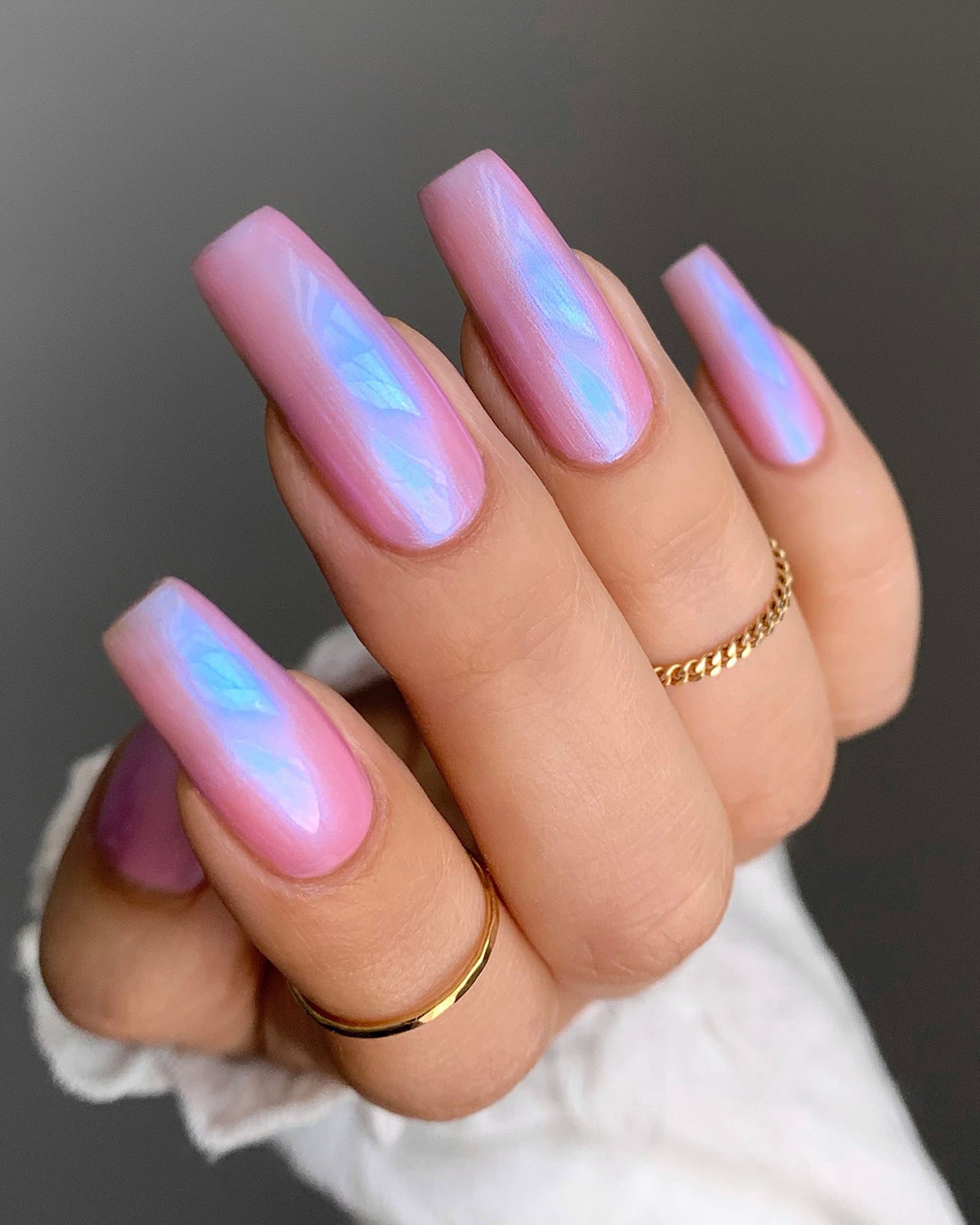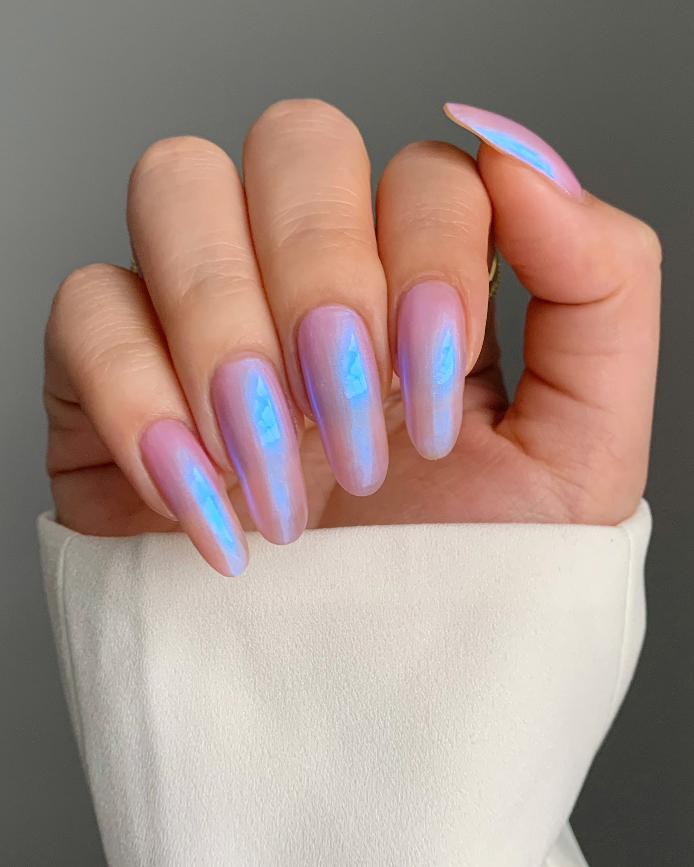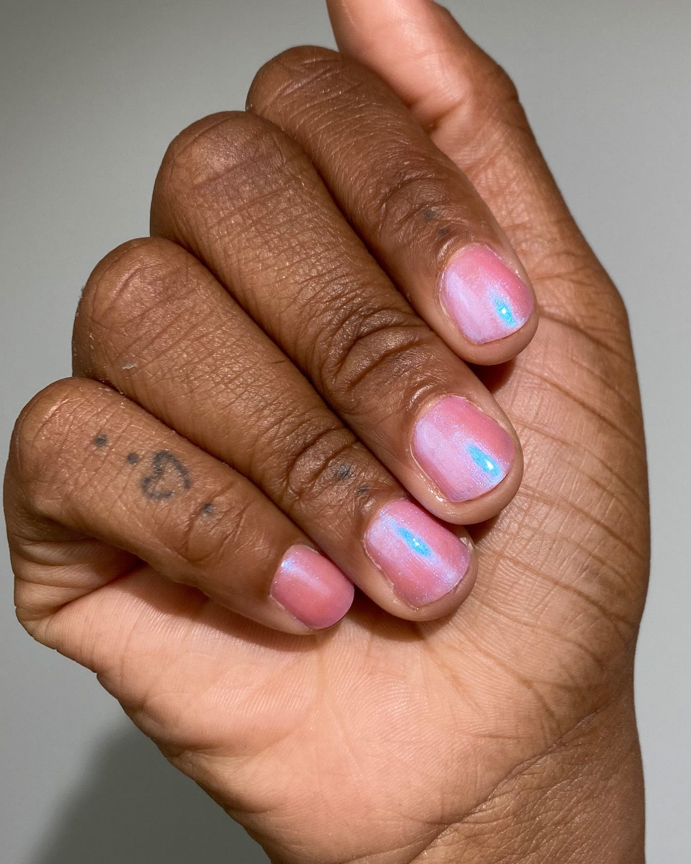 you’ve been hit by cupid’s arrow. fan the moonbeams from your sleeping eyes, as you coast through a romantic, rose-colored haze that’s shimmering with a blushing blue wink of midday magic. though this lacquer be but little, it is fierce, with an intoxicating iridescent sheen that’ll leave you utterly lovestruck.