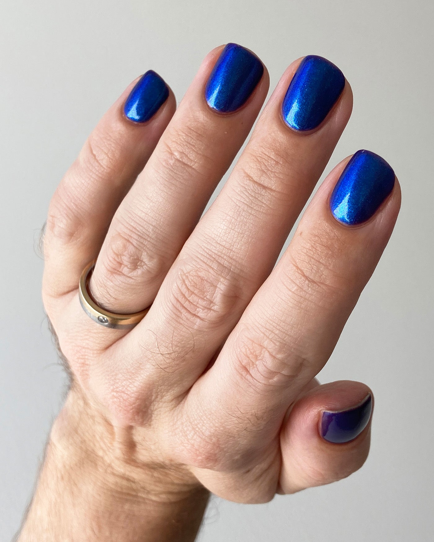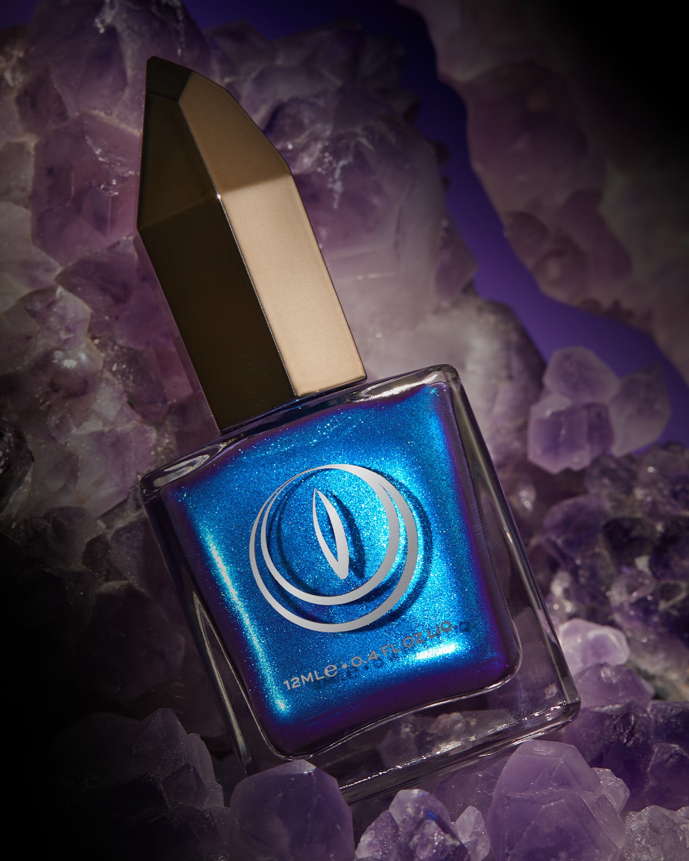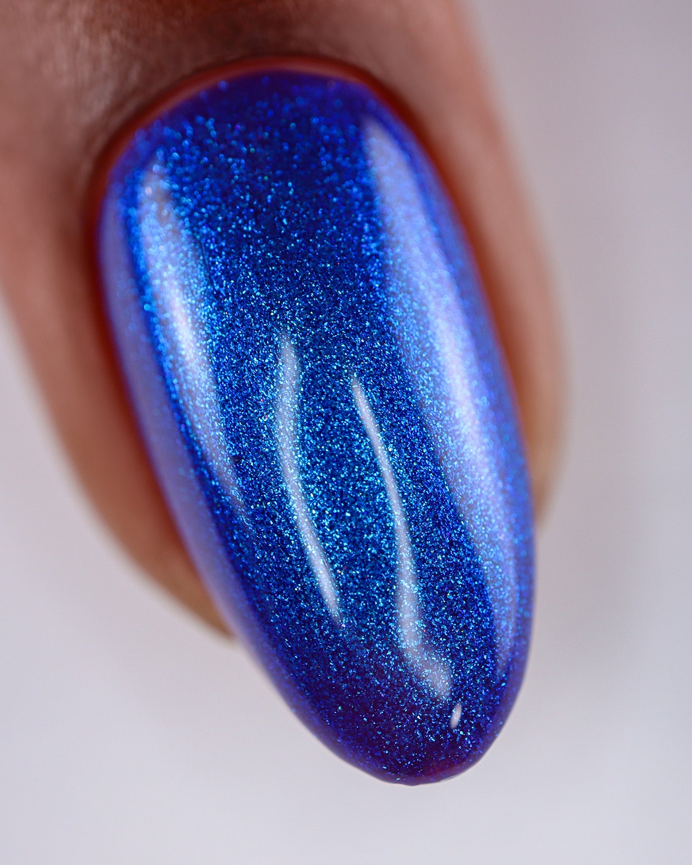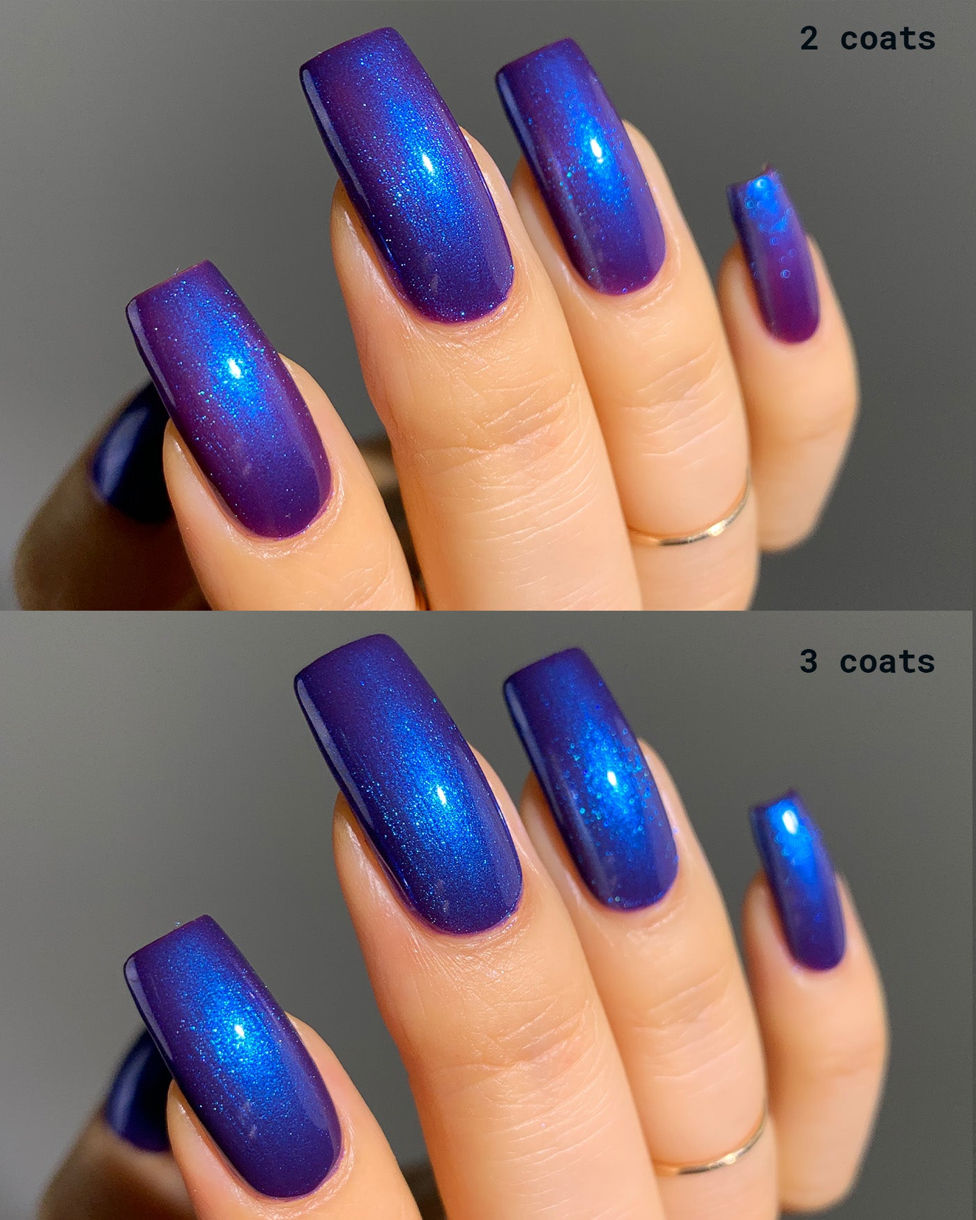 DARK NIGHT OF THE SOUL is a bright purple lacquer filled with blue shimmer. from the FALLEN SET.