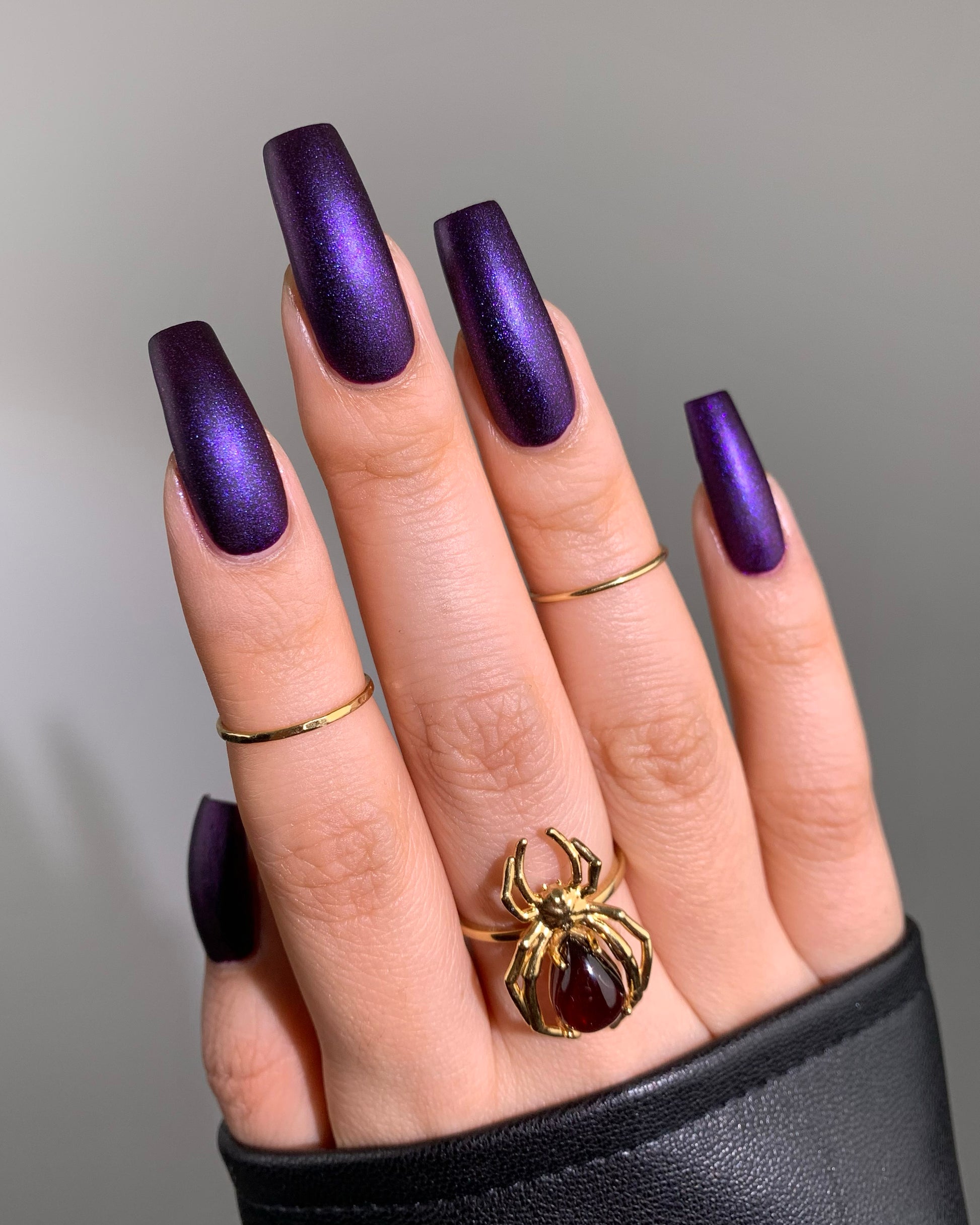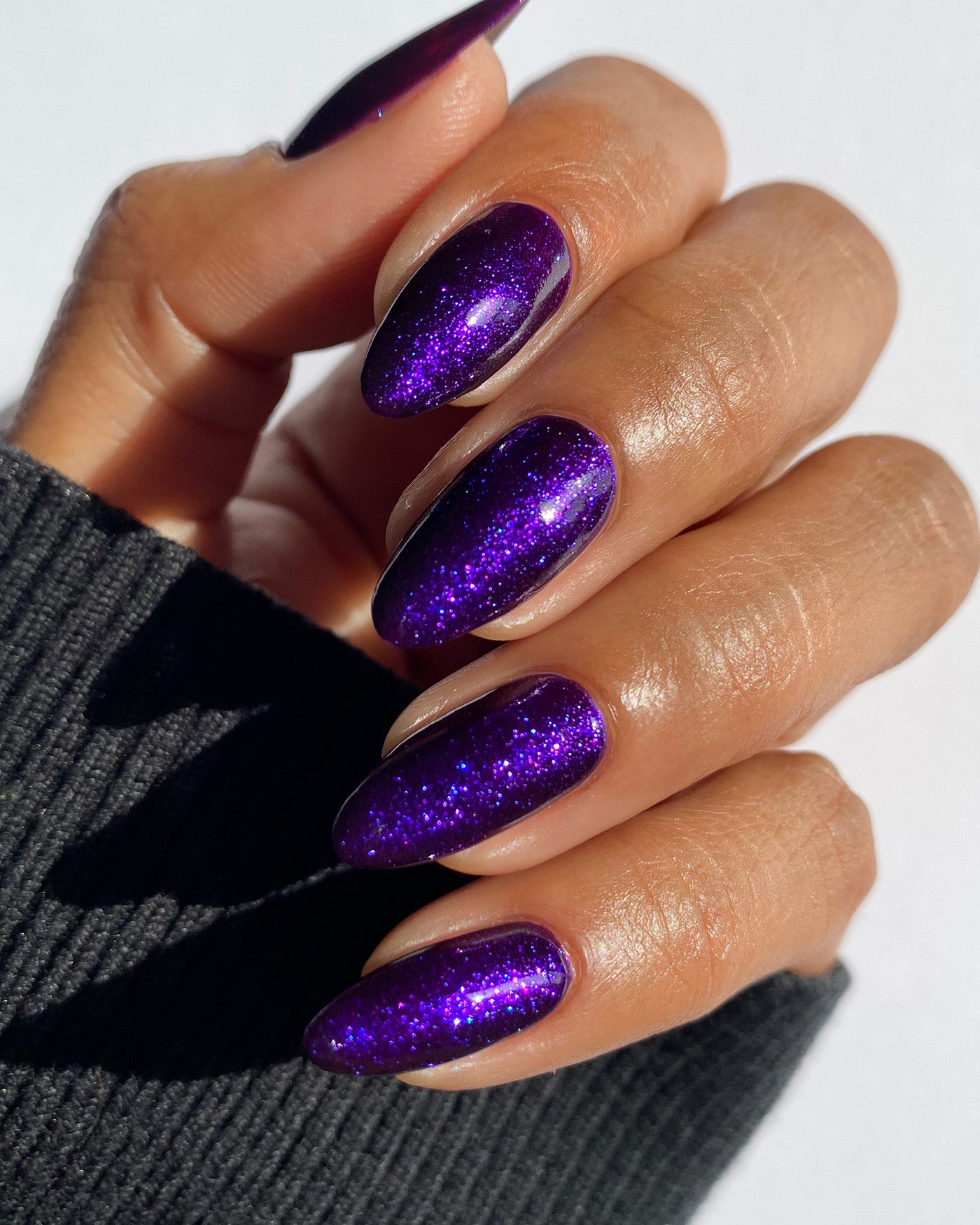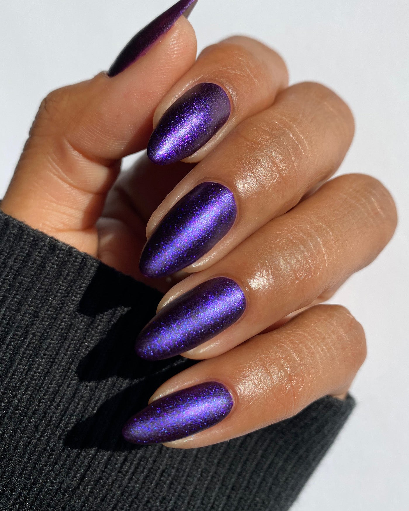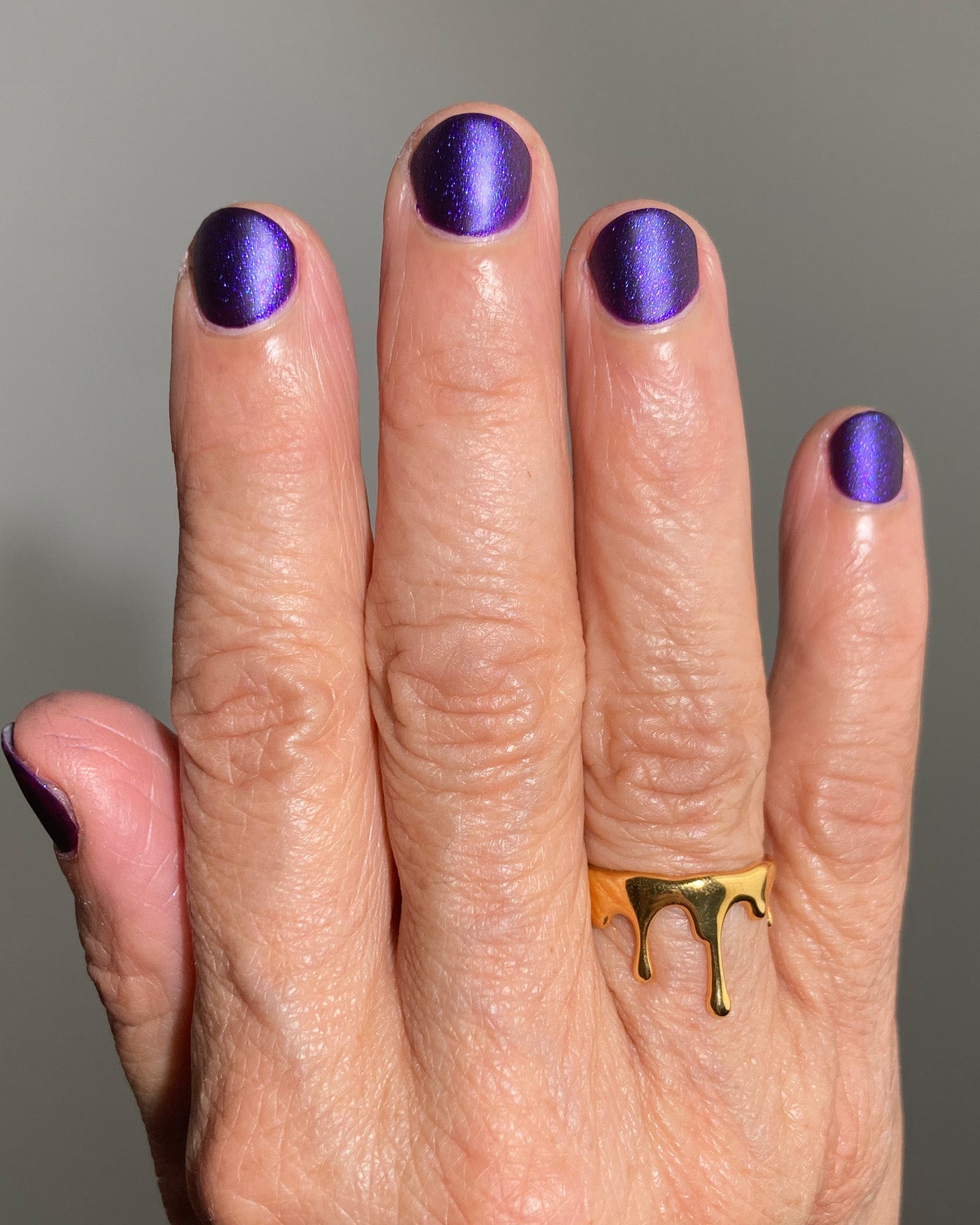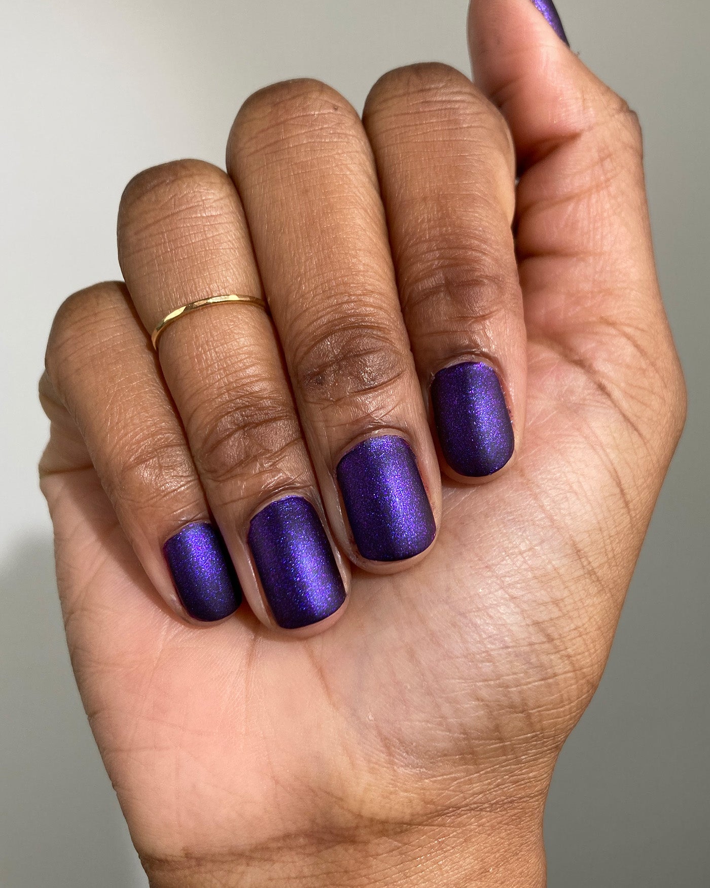 like a beautiful nightmare, this deep purple matte lacquer is much more complex than it initially seems. once unearthed from the clouds, disorienting hints of red, violet, and blue shimmer dance defiantly against its dusk-like backdrop.