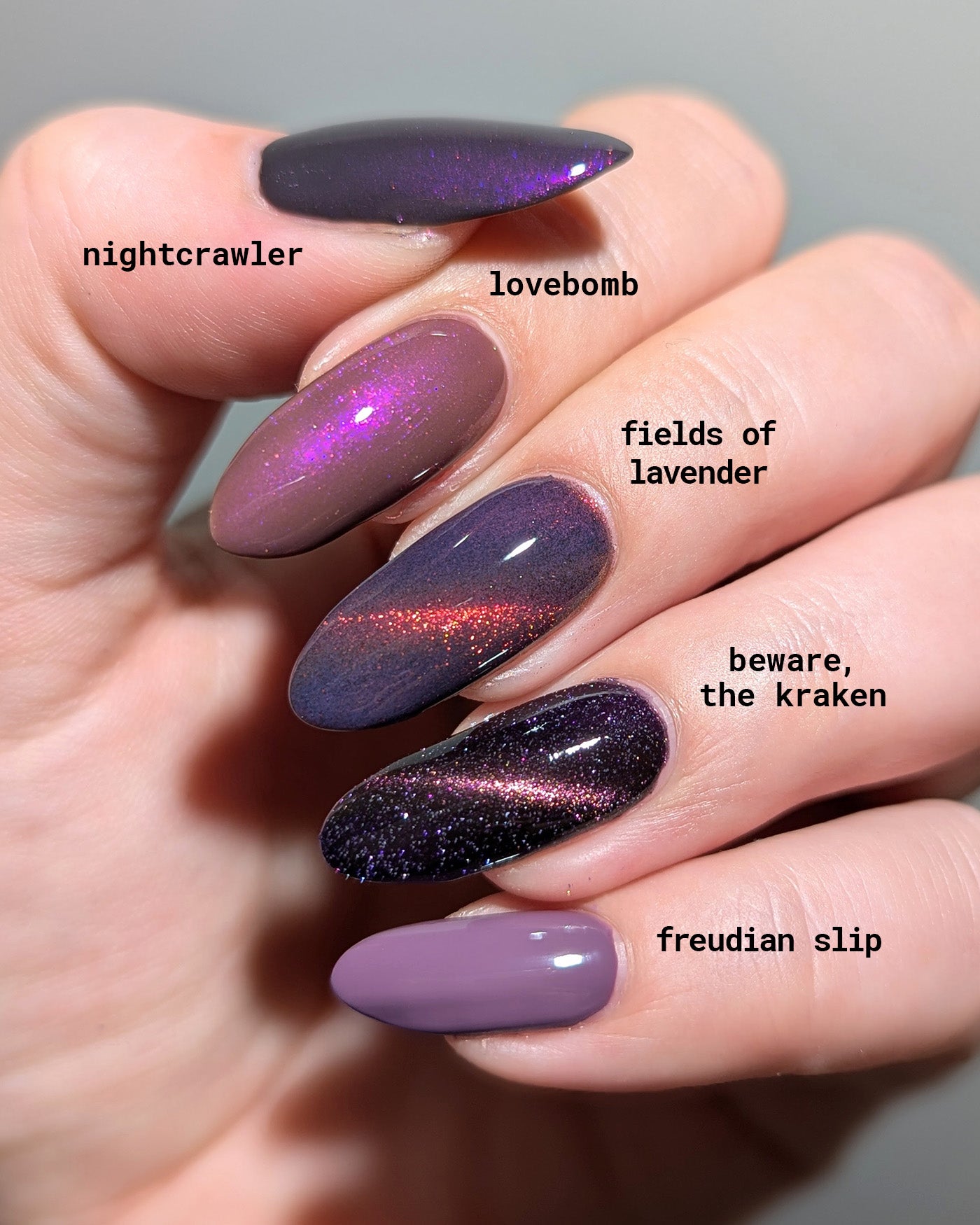 FIELDS OF LAVENDER is a mauve purple magnetic lacquer that reveals a red-orange magnetic stripe. from the FALLEN SET.