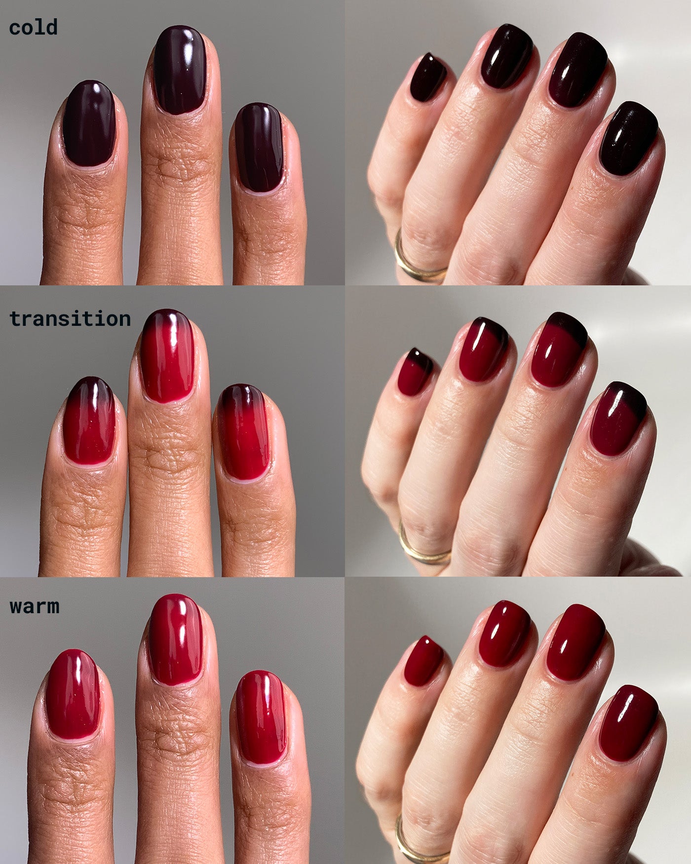 how a thermal lacquer looks + transitions may vary based on your body chemistry, room conditions, + current climate. due to the nature of thermals, this lacquer will also have a thicker formula.