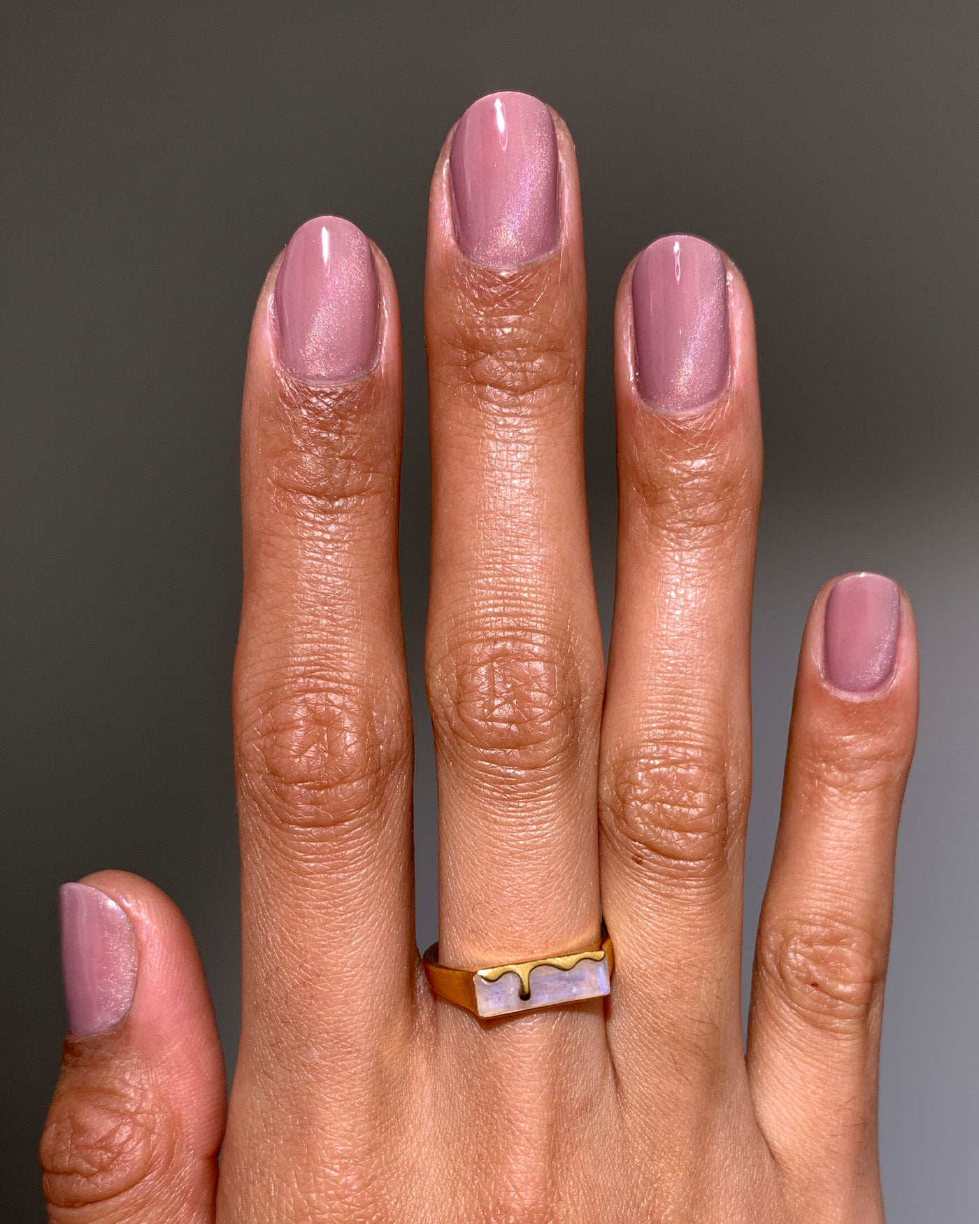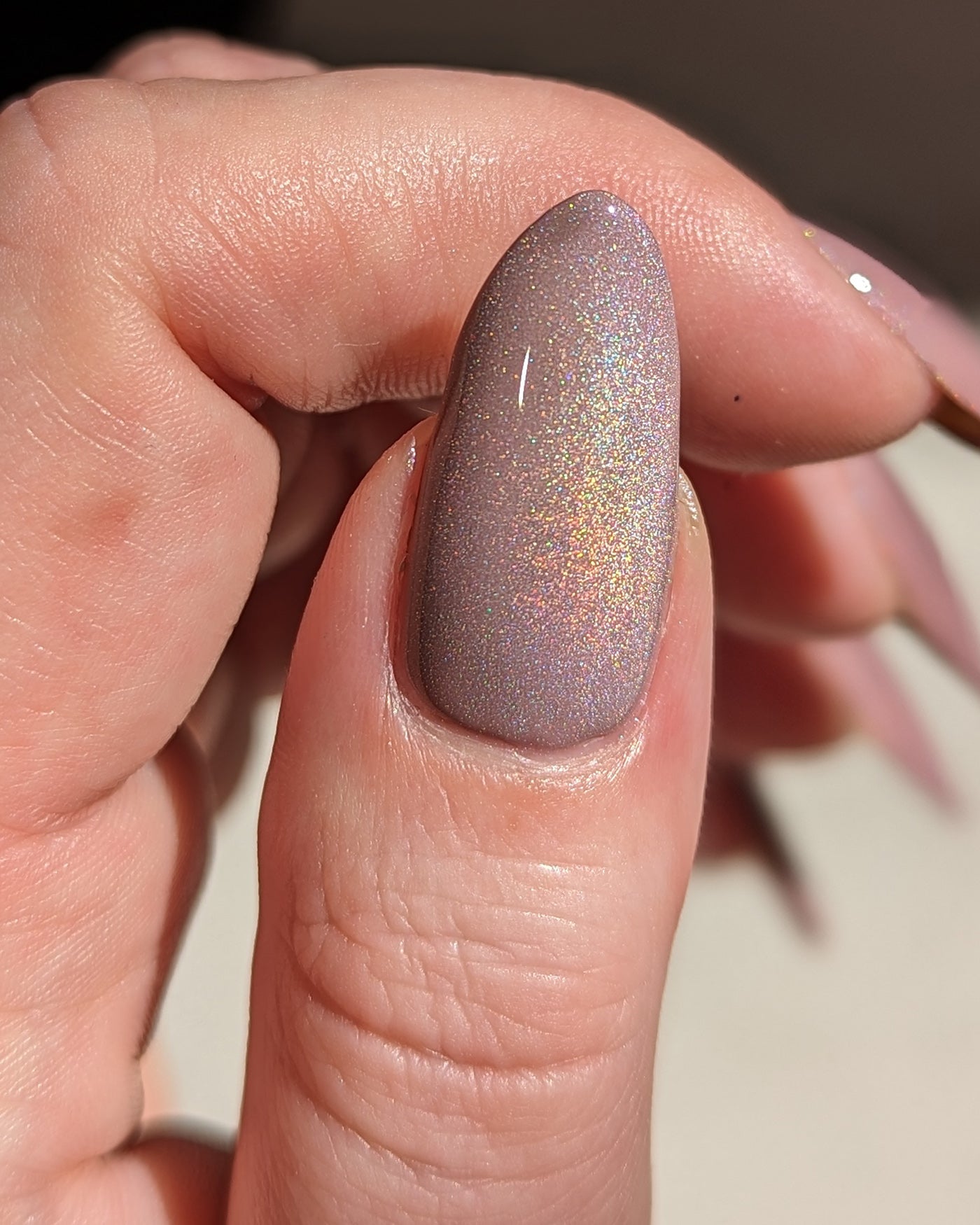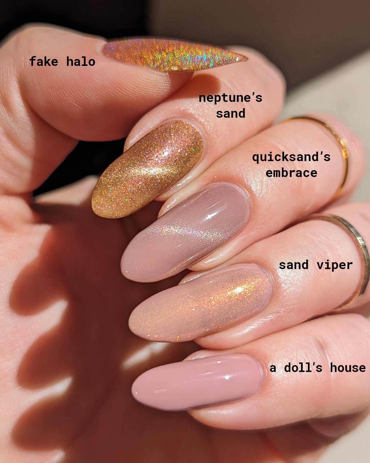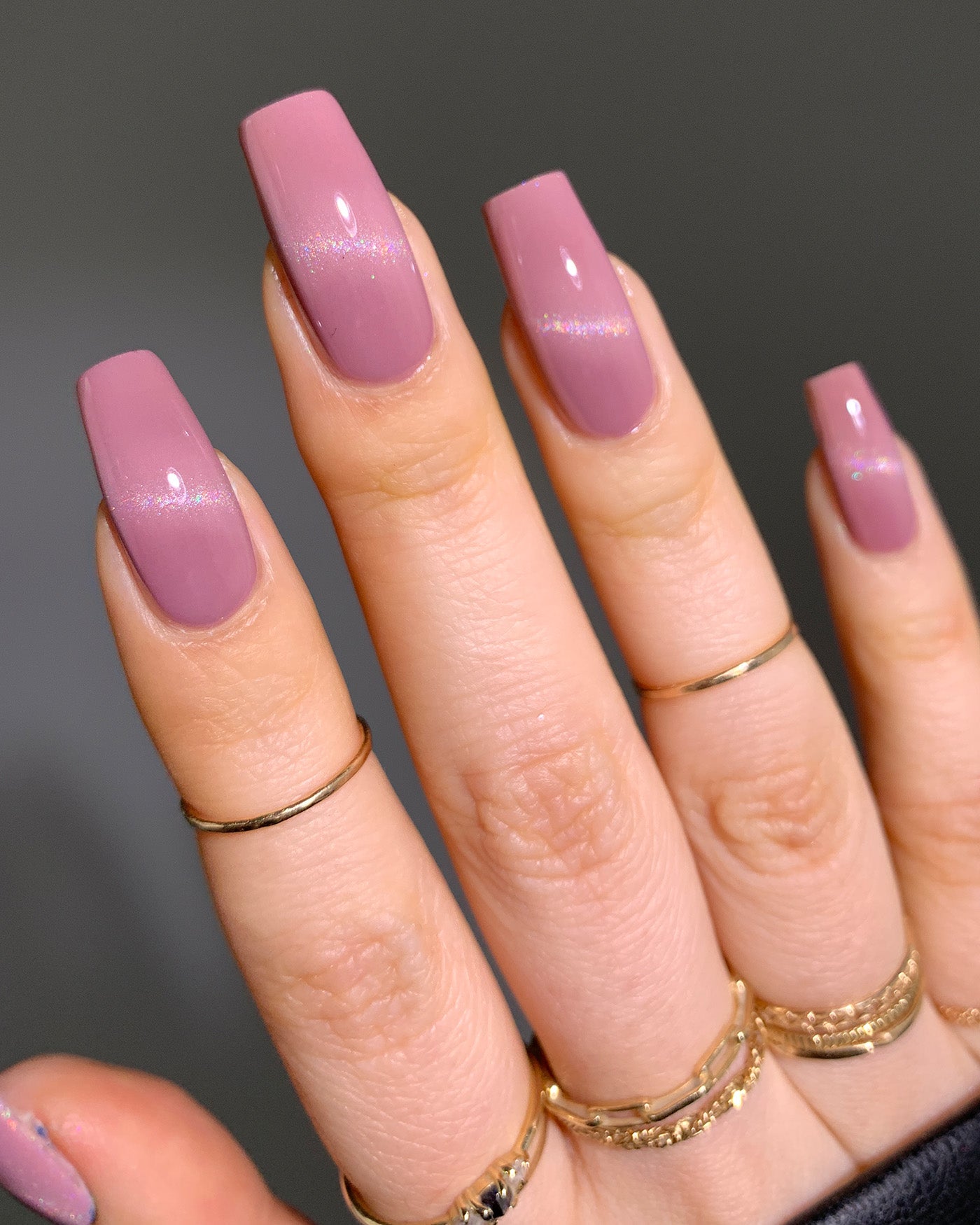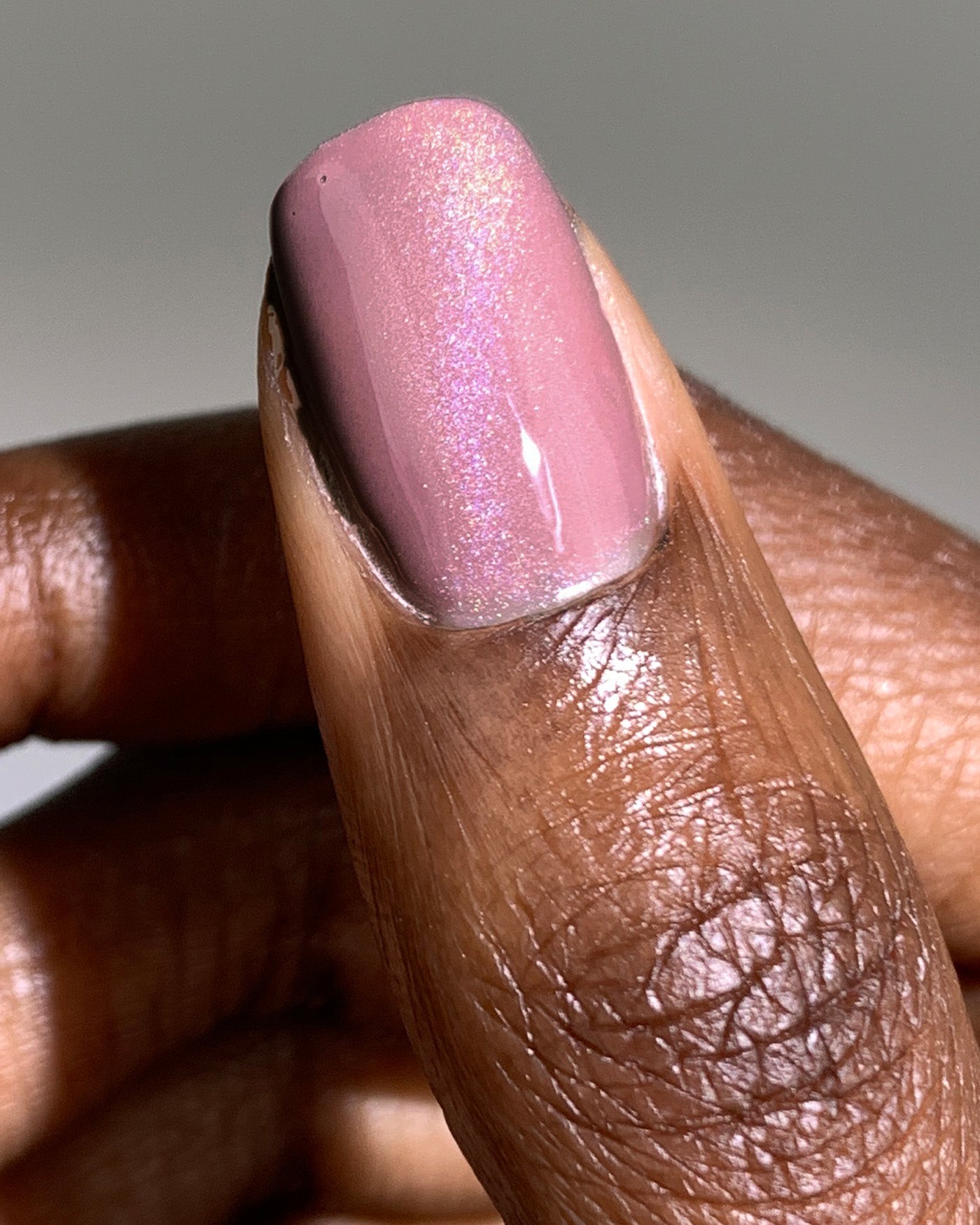 QUICKSAND’S EMBRACE is a dusty pink magnetic lacquer that reveals a soft, subtle silver holographic magnetic stripe. from the SONGS OF SIRENS SET.