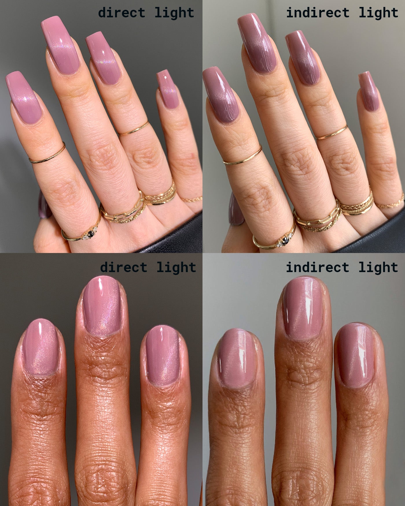 sink your claws into the magnetizing warmth of this sandy pink lacquer and you may just get wrapped up in a loathe like summer. with a wave of your magnetic wand, this deceptively demure shade will come alive with a subtle, mirage-like holographic stripe or a velvety subtle silver holo haze. whether you choose to draw a figurative line in the sand or channel the hazy heat of the setting sun, you’ll never be able to escape the grasp of the ever-sinking sands of time.