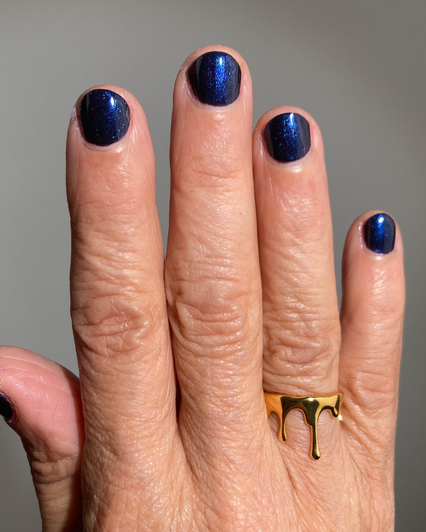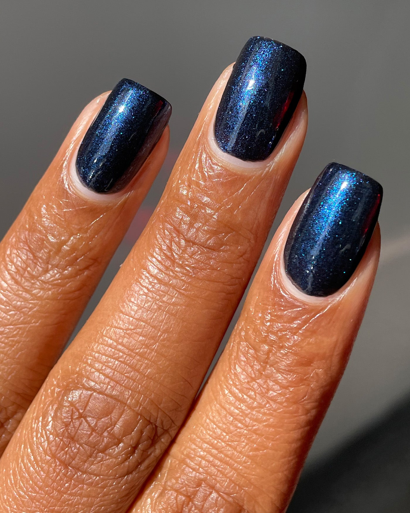 I love dark blue polishes & I have many, but nothing like this. Love the subtle shimmer that gives it a little something extra, but not too much! It’s perfect!