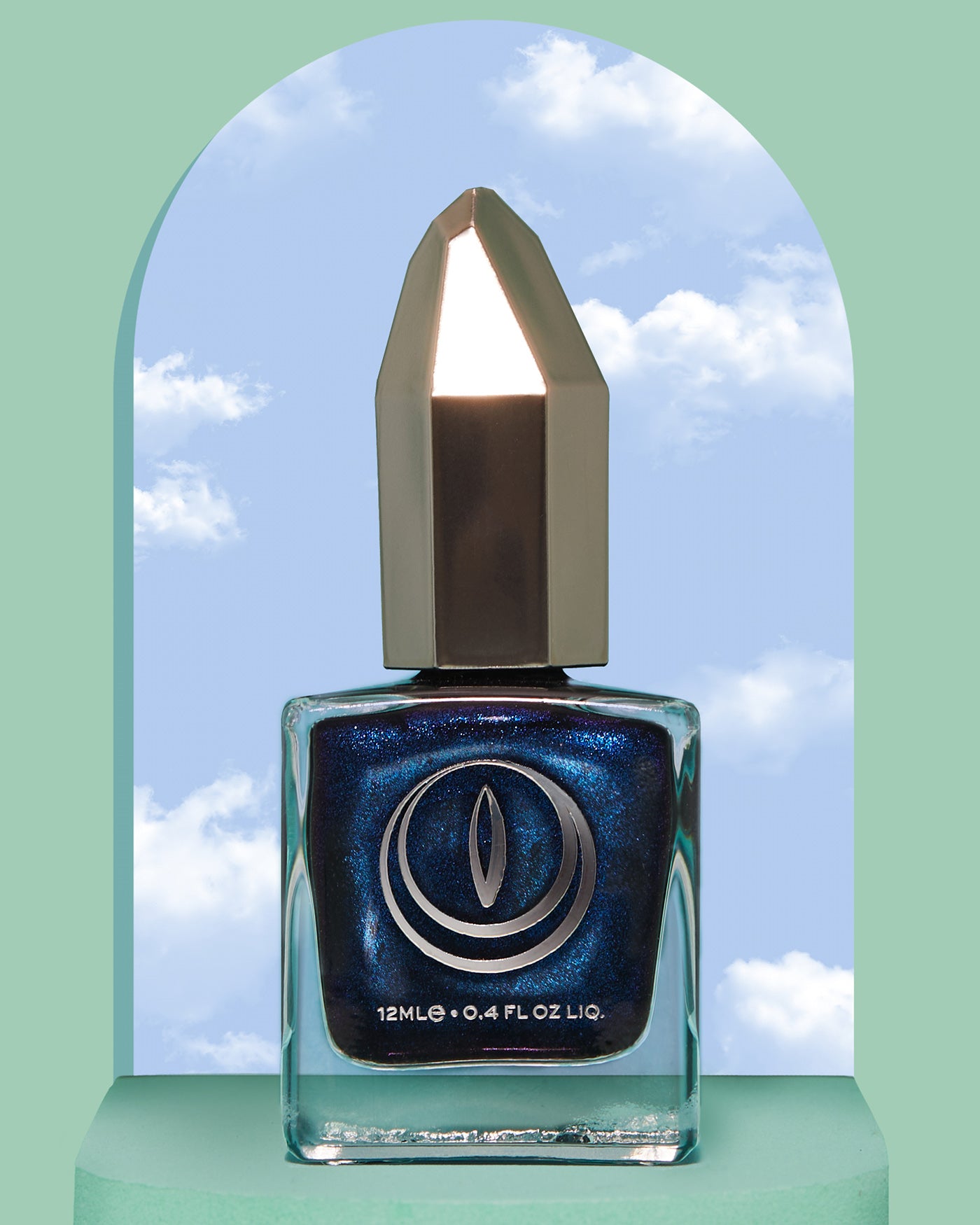 for that fresh when-hell-freezes-over glow just dip your claws into this delightfully ominous shade. as blue shimmer twinkles against its blackest black base, it’s sure to stir all-too unfamiliar feelings of impossibly fond days never passed.
