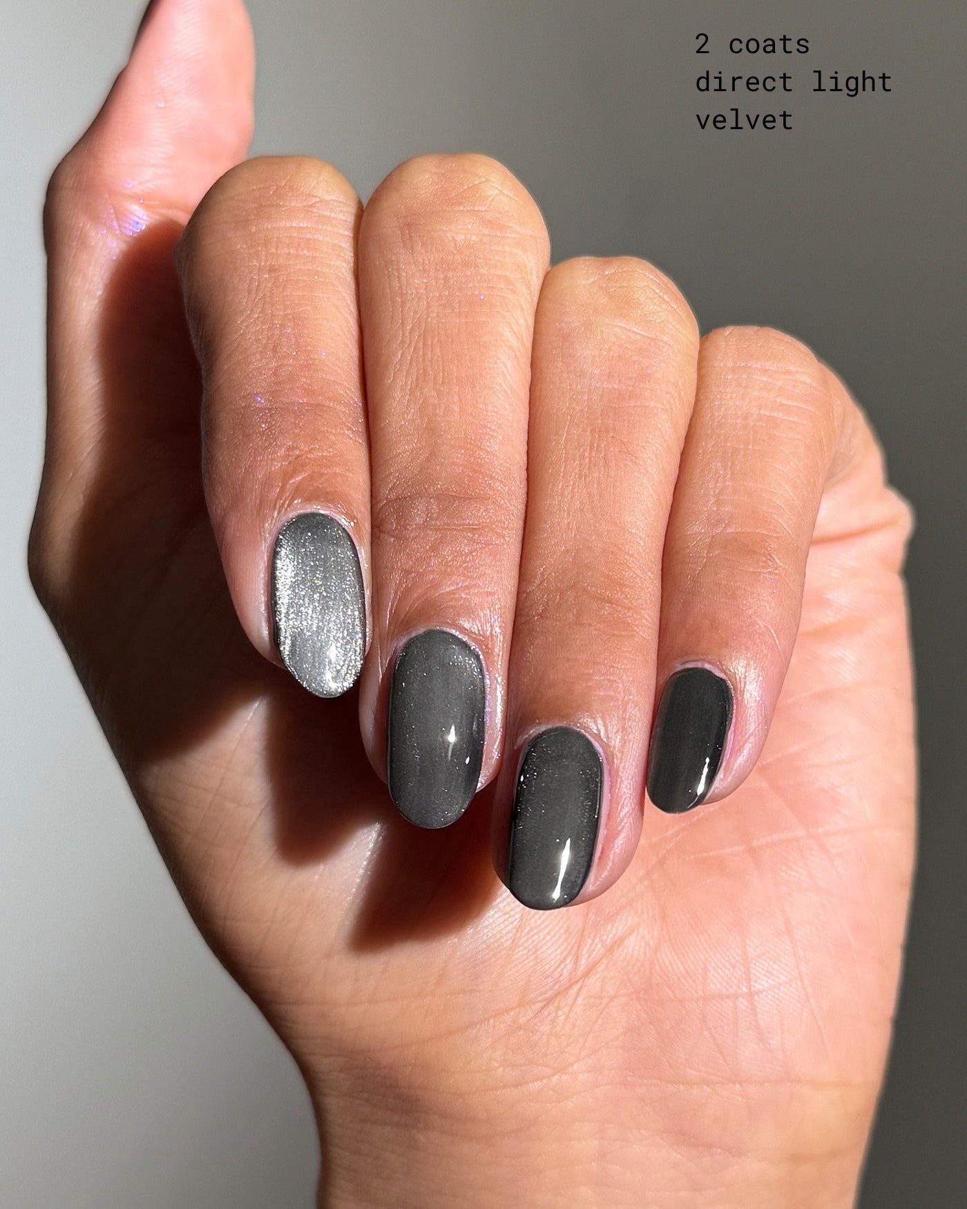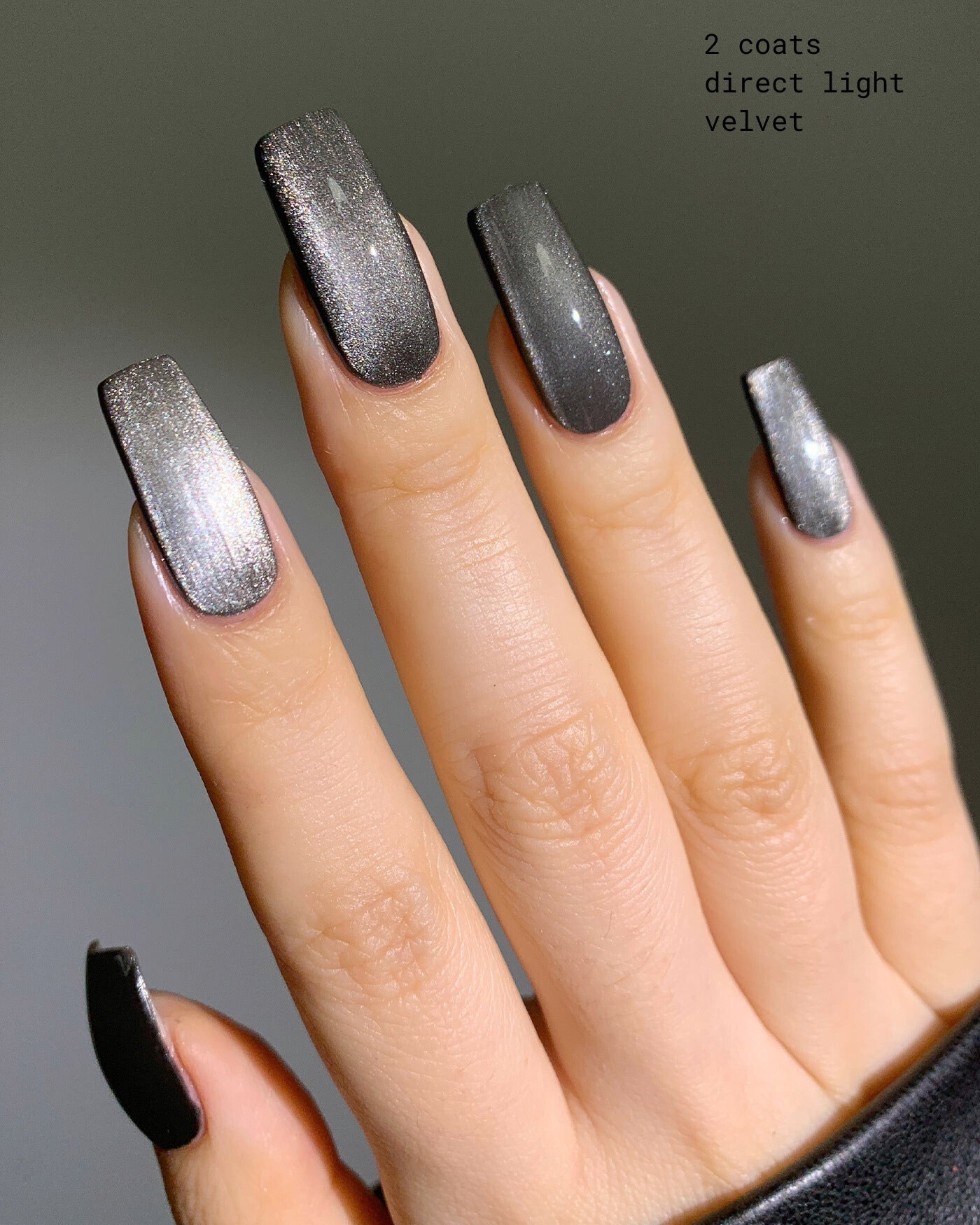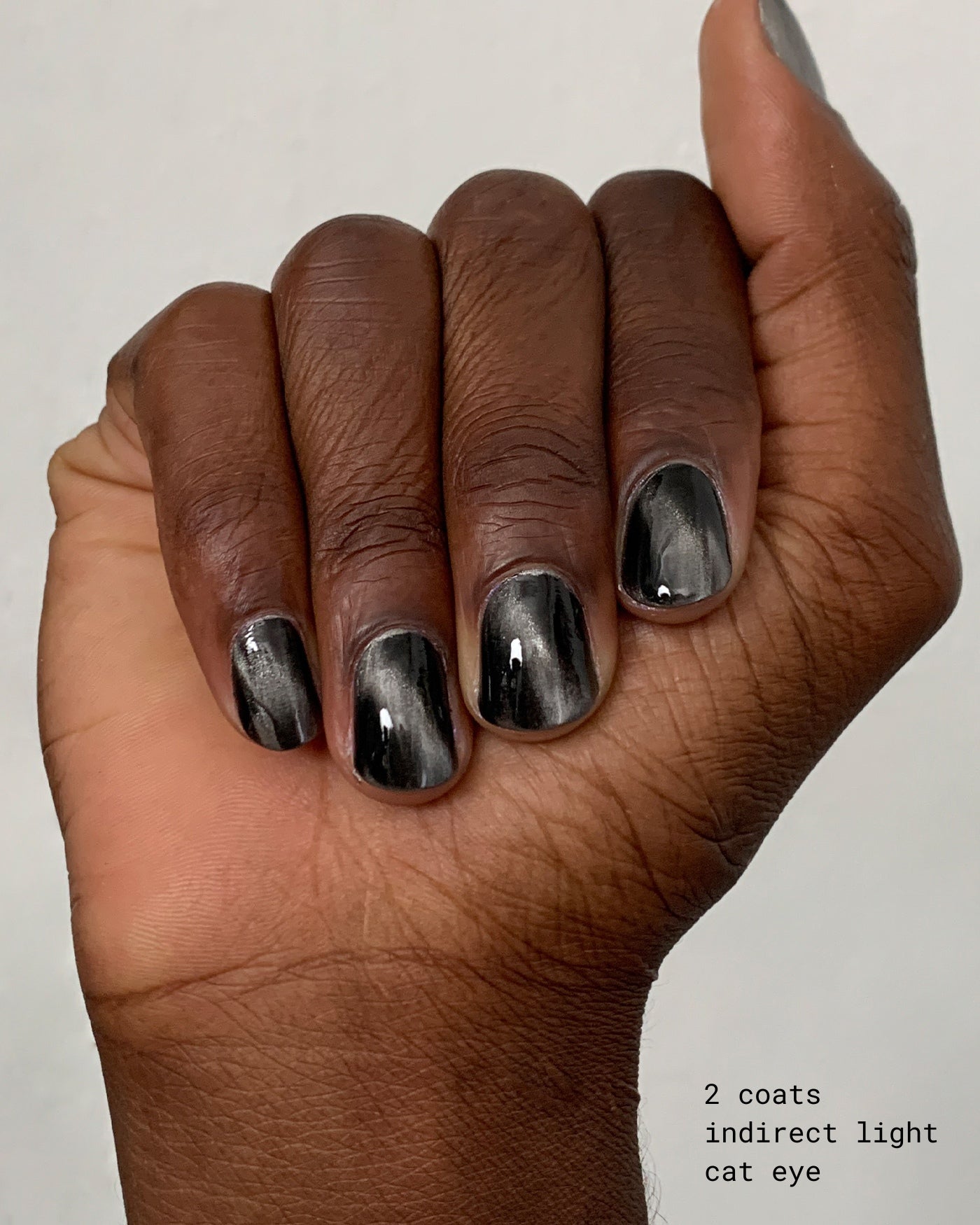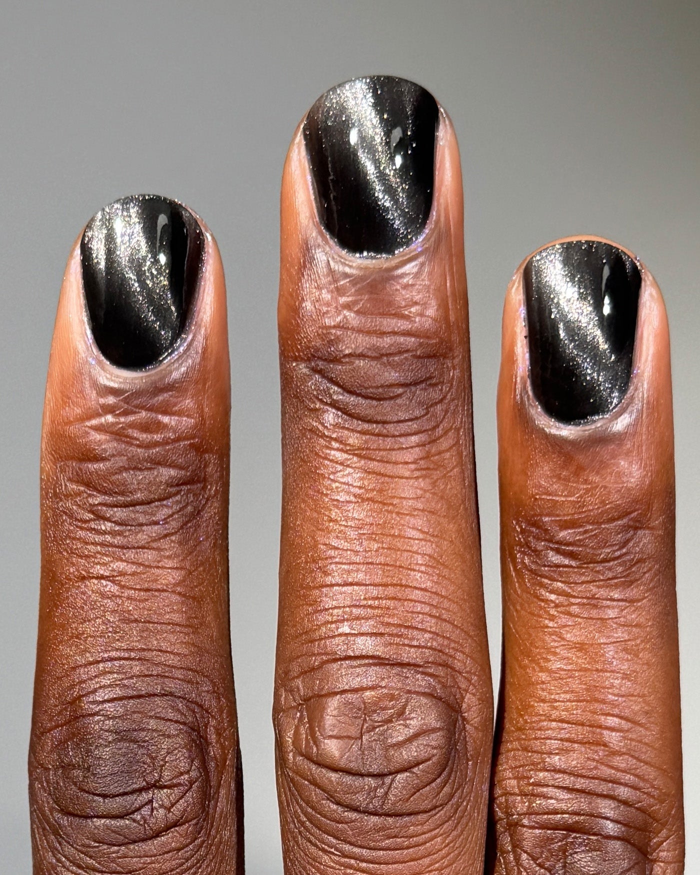 THE SILENT SCREAM is a silver magnetic lacquer that reveals a deep black base when magnetized. from the DANSE MACABRE SET.