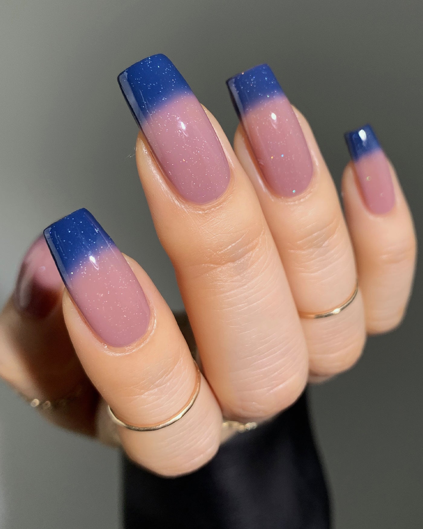 …where your claws control the ever-shifting tides. what treachery lurks beneath? as your temperature rises, the holo dusted waves will wane, revealing the sparkling sands of a mysterious, sheer beige-pink terrain. and as your temperature cools, a calming rush of blue will begin to wash over your claws yet again. let the unpredictable ebb and flow of the great blue continue to wax and wane alongside you all the day through.