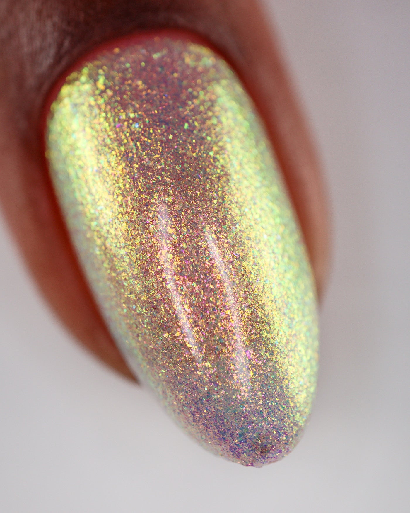 WITCH HAZEL is a peach yellow shimmer lacquer that color-shifts between shades of peachy-pink, yellow, and green. from the FALLEN SET.
