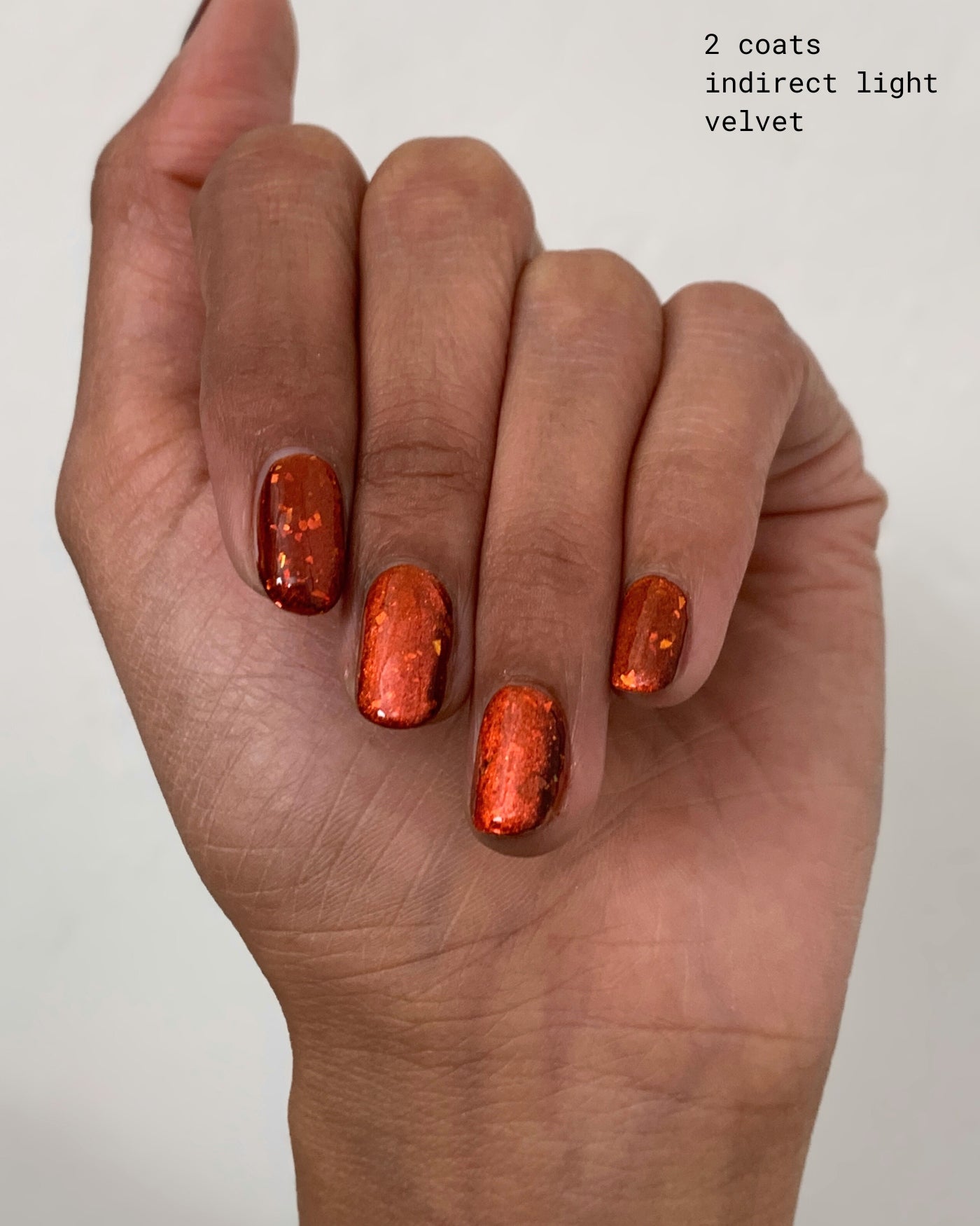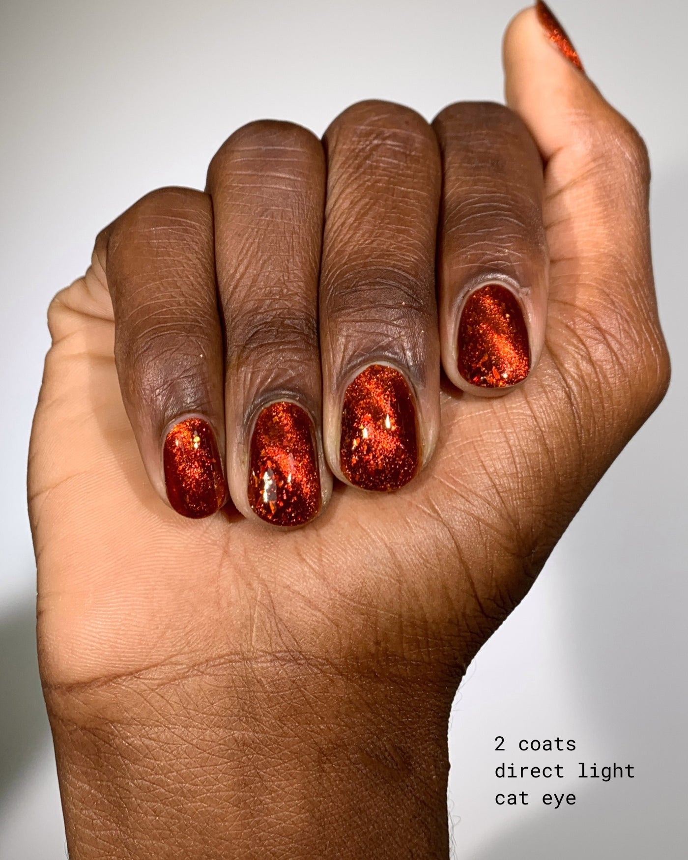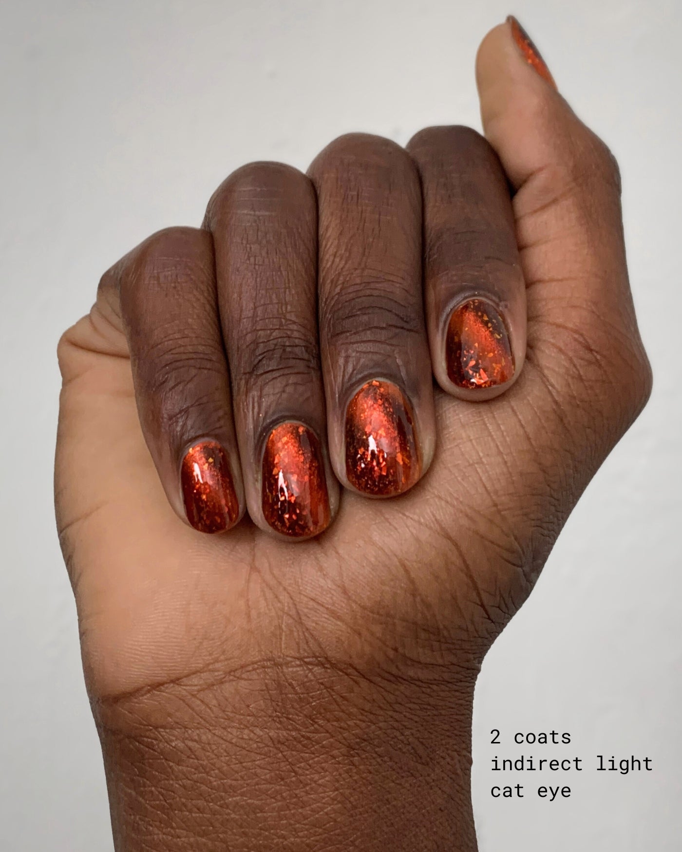 JASMINE DRAGON is a bright orange magnetic lacquer filled with color-shifting, iridescent yellow-to-orange-to-green flakies and red glitter, that reveals a burnt orange base when magnetized. from our AVATAR: THE LAST AIRBENDER collaboration collection - and only available for a limited time.