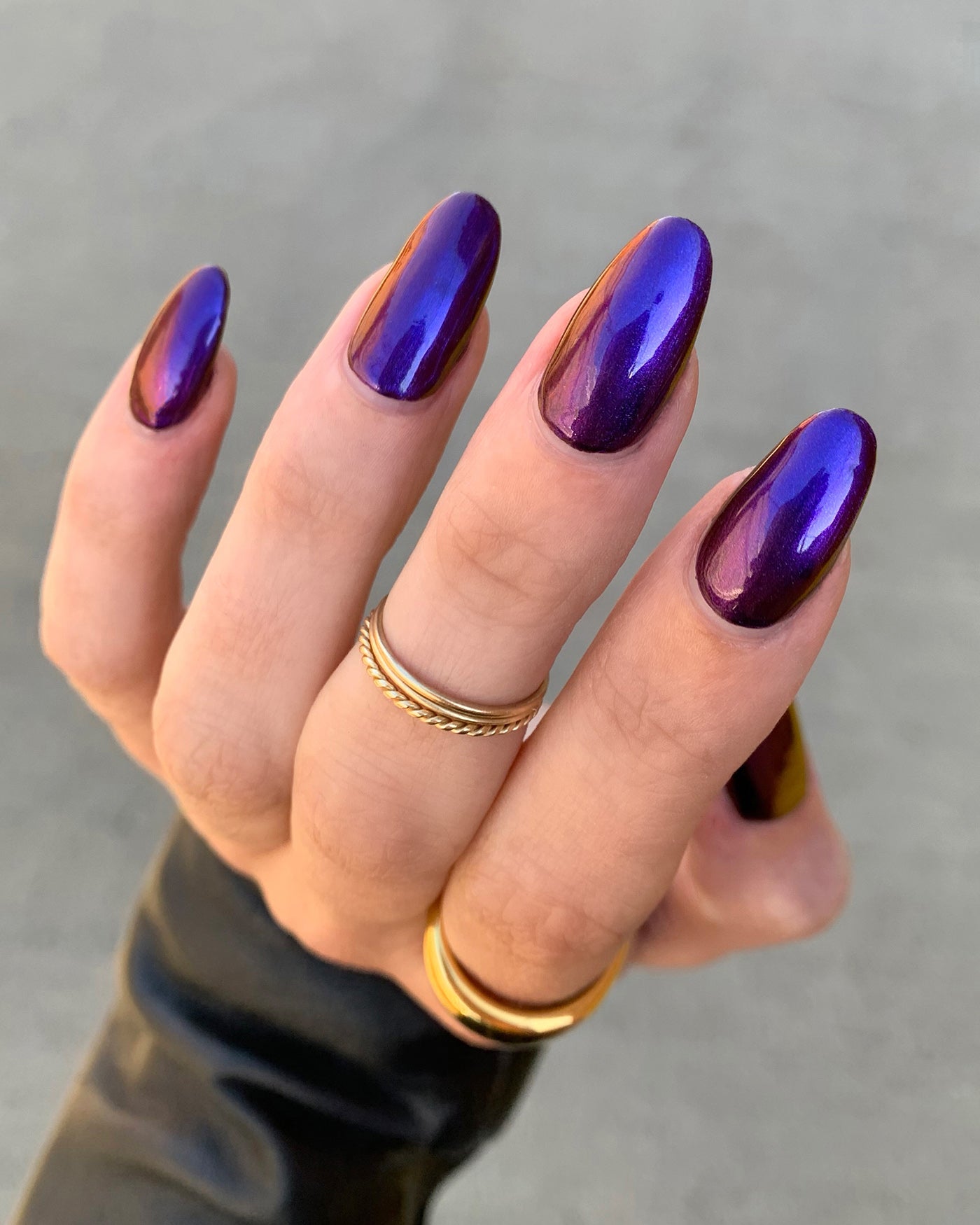 MORTALS BE WARNED is a multichrome lacquer that shifts between shades of indigo and berry as it’s viewed from different angles.