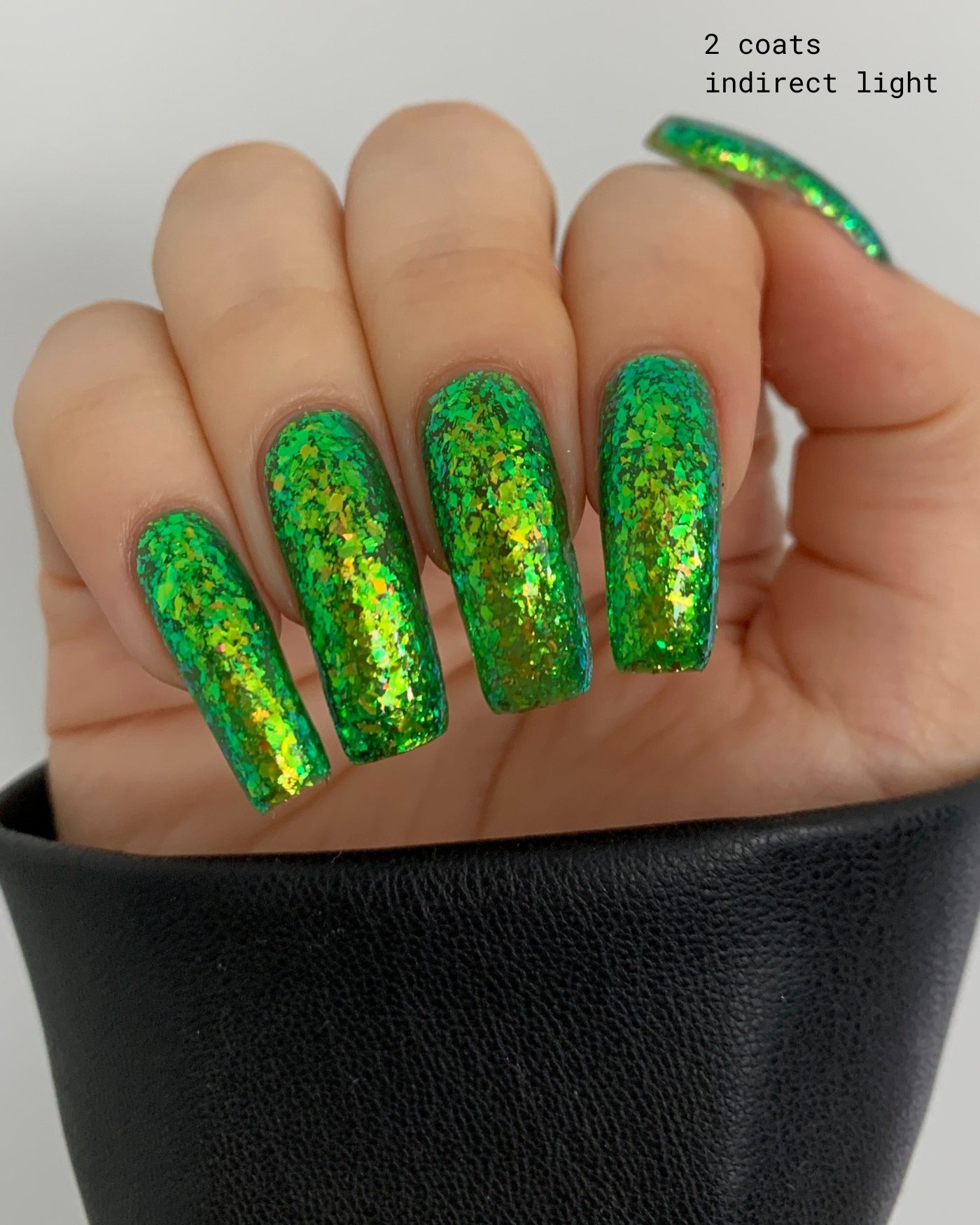 MY CABBAGES! is a green flakie lacquer jam-packed with iridescent flakies that shift from green to yellow to orange. from our AVATAR: THE LAST AIRBENDER collaboration collection - and only available for a limited time.