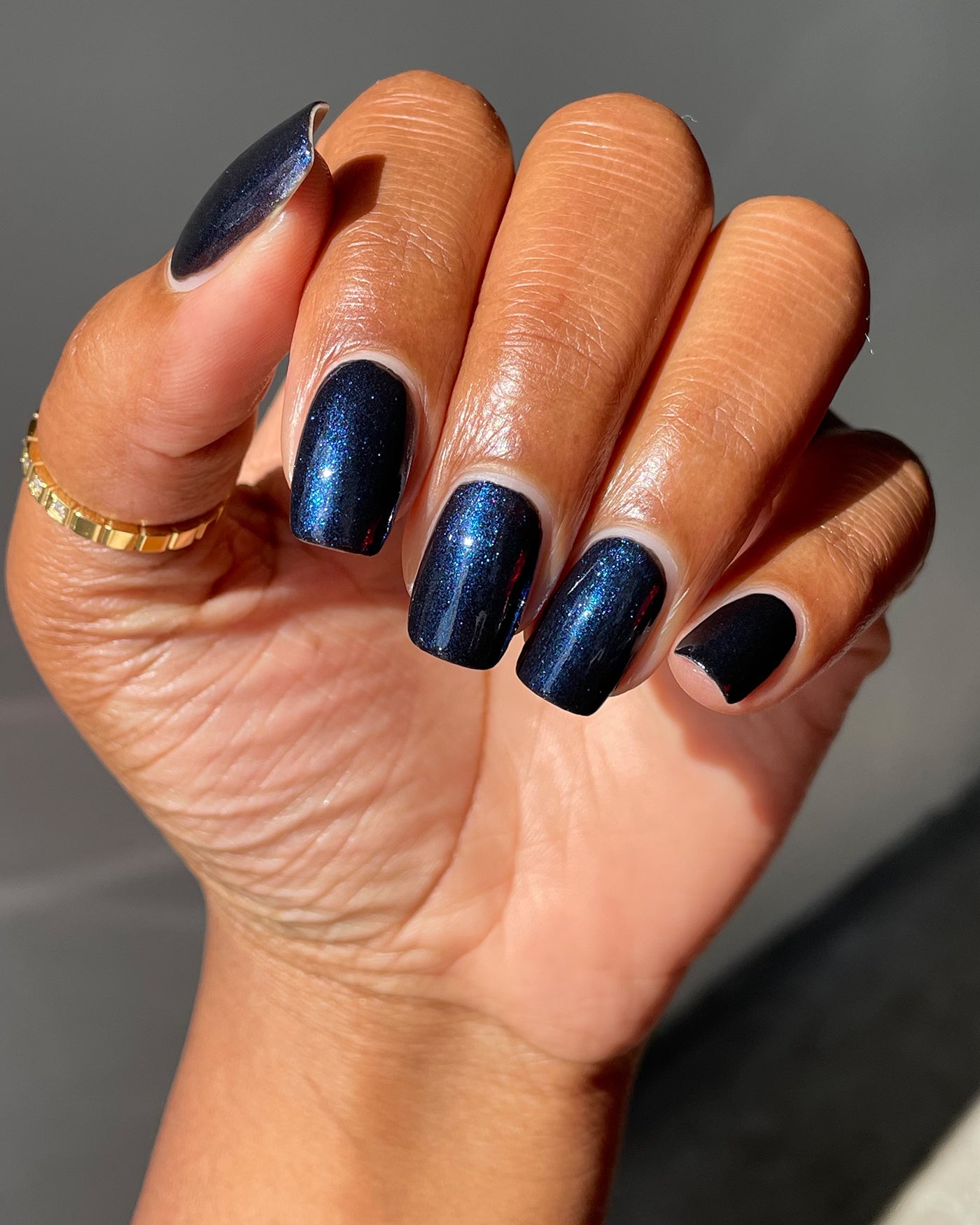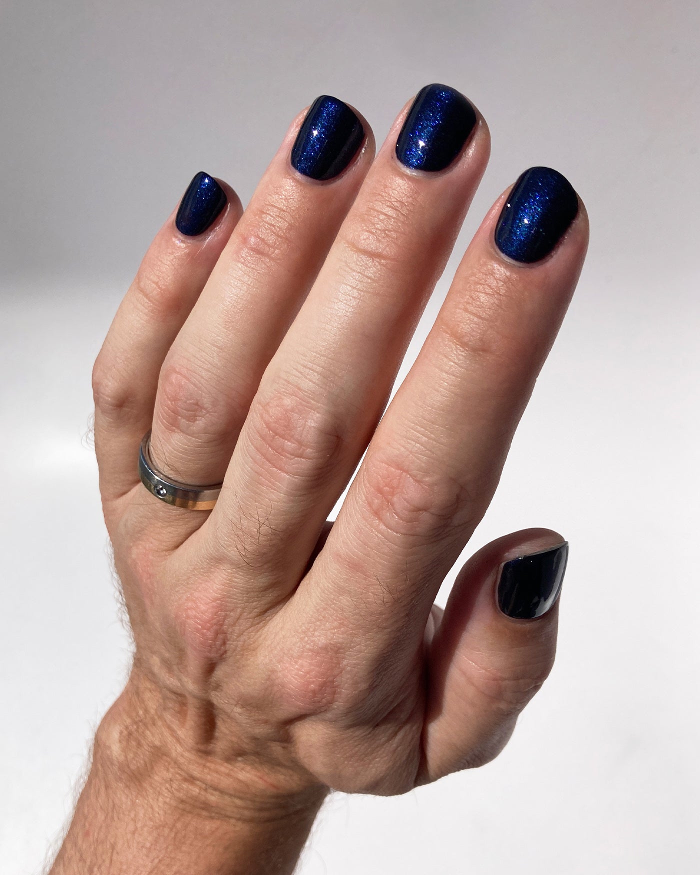 I love dark blue polishes & I have many, but nothing like this. Love the subtle shimmer that gives it a little something extra, but not too much! It’s perfect!
